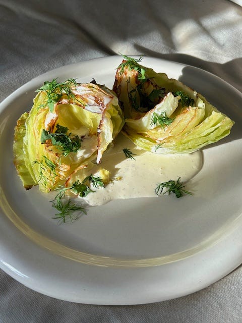 I have been thinking a lot lately about longevity, a cared-for self, alignment, stabilizing forces, and…cabbage. Yes, cabbage. We kicked off the lunar new year earlier this week and the year of the fire horse, which occurs once every 60 years, is upon us. It is an auspicious time of momentum, of potential energy and fortification. My social media this week has been full of galloping, breathtaking, formidable horses. And dotted sparsely in between those horses with manes and tails ablaze, are cabbages. Apparently, according to Vogue and various other cultural news sources, cabbage is having a big year, it’s trending. 2026 is the Year of the Cabbage. According to England’s The Guardian, we’ve shifted from the “cabincore” and “cottagecore” design trends of recent years to now cabbagecore. Seriously, it’s spilled over into everything from home decor, tableware and fashion. I write this half smirking, because…trends…lol. For me, and probably for you, if we’re talking food, one singular ingredient, crop, vegetable etc never really goes out of style, or comes into the spotlight with extreme fervor. Ok, maybe except for the kale revolution of ten+ years ago (good lord I still have ptsd from that era and the cases upon cases of kale that were delivered daily to my cafe in NYC).
